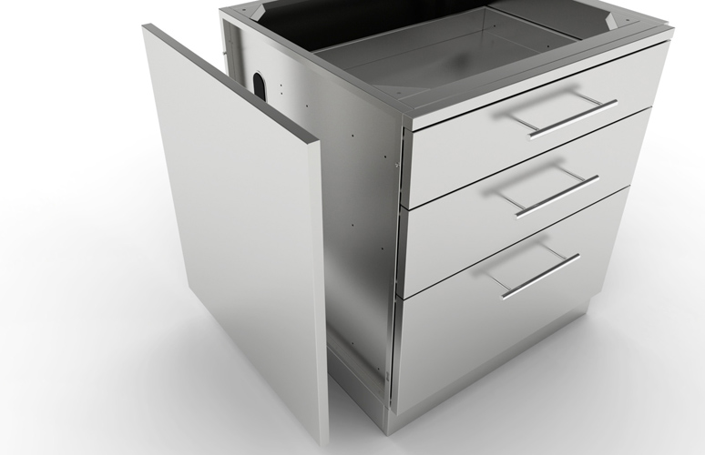 The Sunstone® Base Cabinet end panel adds the finishing touch to your new Cabinet Outdoor kitchen with all 304 stainless steel and brushed finish. The end panel covers up any unsightly internal layer cabinet panels, screw heads, and utility access ports creating a finished appearance and in use on both left and right sides. The panel is easily installed with simple pin-locks, simply lift and drop the panel onto the side of cabinet.