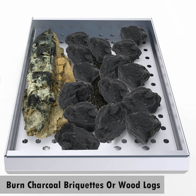 304 Stainless Steel Charcoal Tray for BBQ Grills features Triple Layered Construction allowing you to burn Charcoal/Smoke & Wood Logs within this convertible burn tray. Place the CHARCOAL Tray below the cooking grates on any of our Sunstone & Ruby Gas grill Models and adaptable to other gas grills in the market. Convert your gas grill into a gas charcoal hybrid with superior versatility. Lift top panel up and fill the channels with Mesquite Charcoal and Wood Chips for added flavorful smoking experience. The sturdy material and three component construction ensures it will not warp in high heat usage.